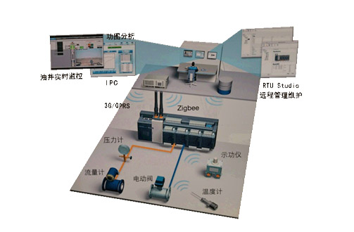 RTU-3600在抽油機物聯(lián)網(wǎng)應(yīng)用中扮演了關(guān)鍵的角色,可靈活搭配Wifi/3G/GPRS模塊以滿足廣域遠程的數(shù)據(jù)傳輸需求,并支持Zigbee協(xié)議無線連接現(xiàn)場溫度儀表、示功儀等裝置,F(xiàn)場發(fā)生的事件皆會被打上時標(SOE),在遠程WebAccess畫面上進行呈現(xiàn)和工況診斷。