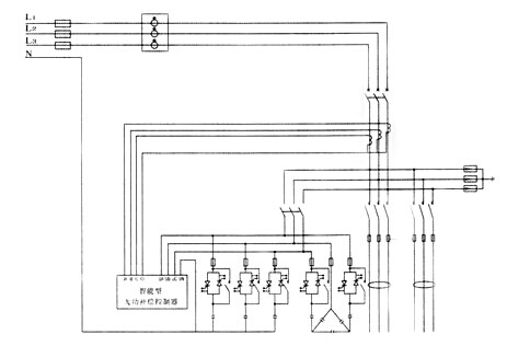 該裝置以智能型無(wú)功補(bǔ)償控制器為核心,采用無(wú)功功率與電壓控制策略,使無(wú)功功率得到**化補(bǔ)償,**化節(jié)約電能;該裝置采用了功率模塊與交流接觸器聯(lián)合運(yùn)行的方式,既采用了功率模塊零電壓投入、零電流切除的優(yōu)點(diǎn)又發(fā)揮了交流接觸器能耗小、無(wú)諧波污染的優(yōu)勢(shì);該裝置采用共補(bǔ)與分補(bǔ)相結(jié)合的運(yùn)行方式,使每相無(wú)功功率都得到**補(bǔ)償。 三、主電路方案圖
