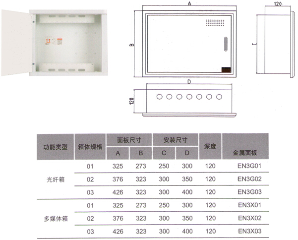 技術(shù)參數(shù) ■ 額定工作電壓:AC220V ■ 插座額定電流:10A ■ 平板全金屬門,向左開啟120° ■ 箱體材料: □ 金屬門采用冷軋鋼板制造,表面采用靜電噴塑處理,乳白色,厚度0.8或1.0mm,堅(jiān)固耐用,具有極好的耐腐蝕性。 □ 底箱采用冷軋鋼板制造,內(nèi)折邊設(shè)計(jì)。表面采用靜電噴塑處理,堅(jiān)固耐用,具有極好的耐腐蝕性。 ■ 安裝及布線: □ 底箱上下有敲落孔,便于進(jìn)出線。 □ 箱體內(nèi)側(cè)上下兩邊,備有模塊安裝支架,便于理線。 □ 光纖箱內(nèi)部配備有ONU支架,兼容不同尺寸ONU設(shè)備,可配備光纖熔接盤,實(shí)現(xiàn)光纖續(xù)接,真正實(shí)現(xiàn)光纖到戶。