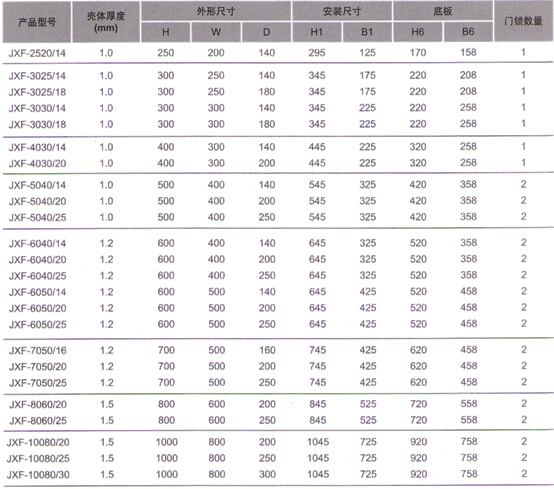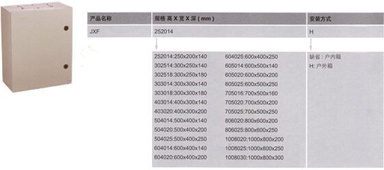 注:另有戶內(nèi)暗裝箱接受定制,訂貨在戶內(nèi)箱后加“R”; 如箱體尺寸為250×200×150,暗裝箱,訂貨號為JXF252015R 技術(shù)參數(shù) ■ 額定工作電壓:230/380V AC ■ 短時耐受電流:6/15kA ■ 最大額定工作電流:125A ■ 箱體材料: □ 整箱采用冷軋鋼板制造,表面采用靜電噴涂處理,堅(jiān)固耐用,具有極好耐腐蝕性 □ 顏色為卵石灰(RAL7032) ■ 符合標(biāo)準(zhǔn):GB17466-2008 ■ 防護(hù)等級:IP30