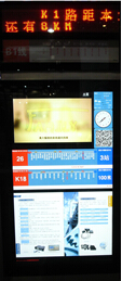 “智能公交電子站牌”是一款公交智能化產(chǎn)品,解決了以往乘客等待公交時(shí)的盲目與無聊。電子站牌不僅可以直觀告訴乘客:等候的公交車離本站還有多遠(yuǎn),還可以提供實(shí)時(shí)文字或視頻節(jié)目供等候乘客觀看,諸如智能控制線路顯示信息、公共信息、公交改造信息、廣告信息等,自動(dòng)校準(zhǔn)時(shí)間、天氣、車輛到站信息等,做到了真正意義上的智能公交電子站牌。充分體現(xiàn)了城市公交的智能化。