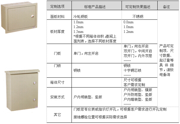 注:另有戶內(nèi)暗裝箱接受定制,訂貨在戶內(nèi)箱后加“R”; 如箱體尺寸為250×200×150,暗裝箱,訂貨號為JXF252015R 技術(shù)參數(shù) ■ 額定工作電壓:230/380V AC ■ 短時耐受電流:6/15kA ■ 最大額定工作電流:125A ■ 箱體材料: □ 整箱采用冷軋鋼板制造,表面采用靜電噴涂處理,堅(jiān)固耐用,具有極好耐腐蝕性 □ 顏色為卵石灰(RAL7032) ■ 符合標(biāo)準(zhǔn):GB17466-2008 ■ 防護(hù)等級:IP30